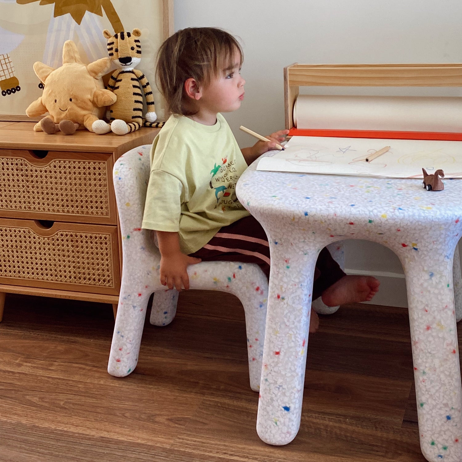 Unleash the magic of play with the award-winning Confetti Set The Children’s Table and Chair Set – crowned Best Playroom Item of the Year 2025 at the Kiindred Baby Awards!