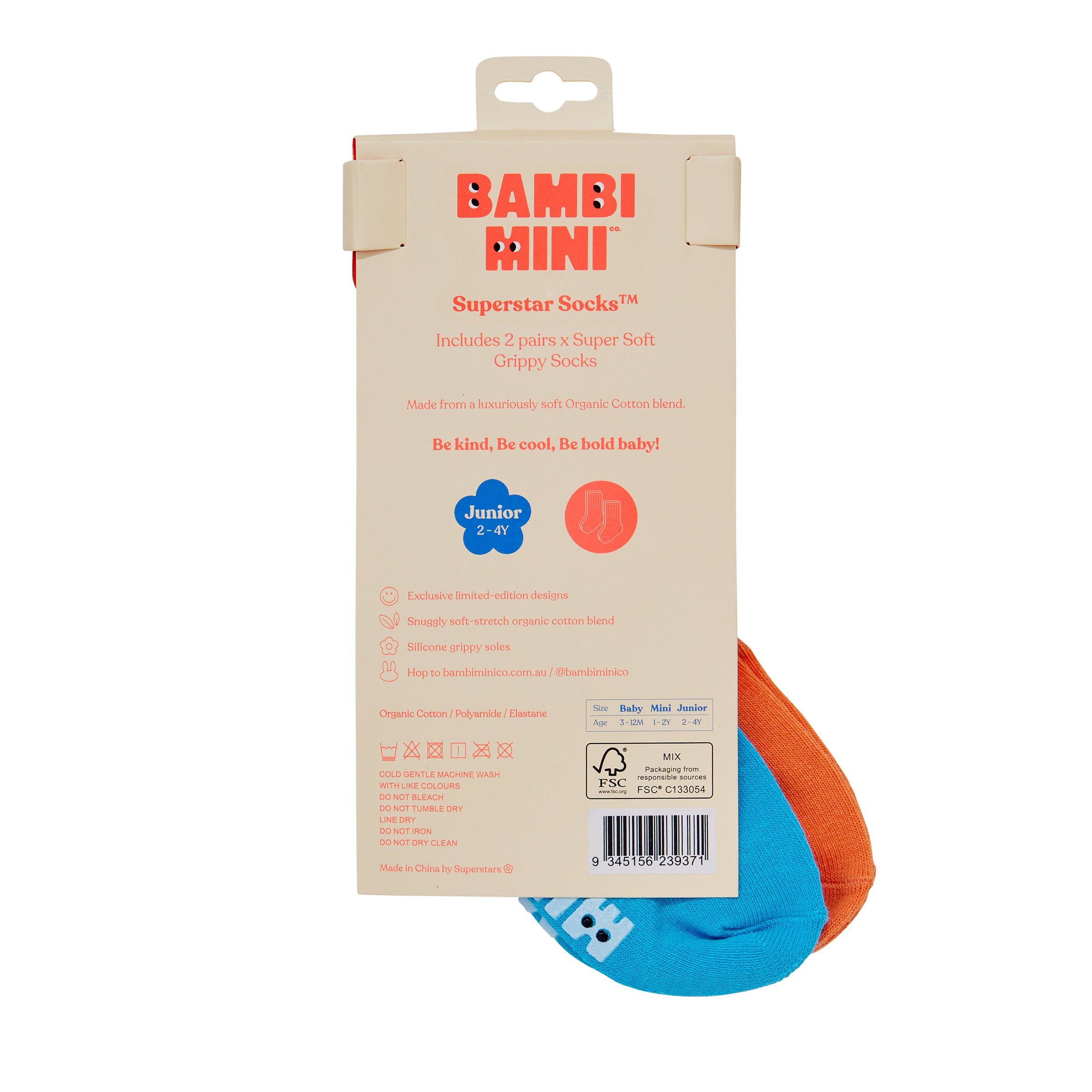 - Exclusively designed organic cotton kids socks by Brisbane artist Brook Gossen.