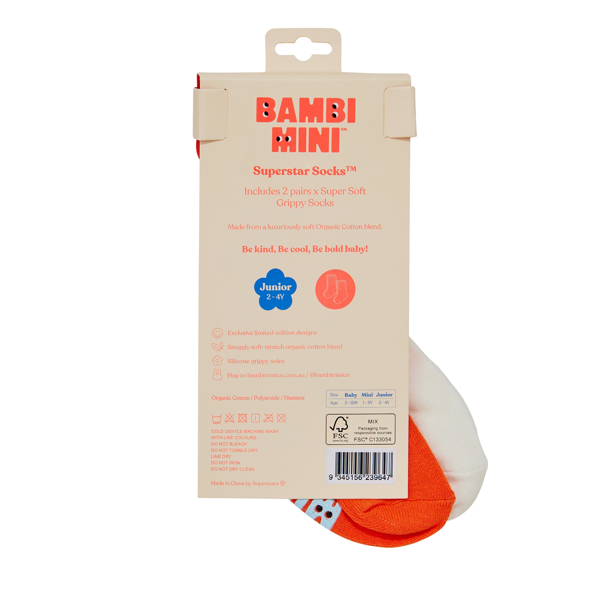 - Exclusively designed organic cotton kids socks by Brisbane artist Brook Gossen.